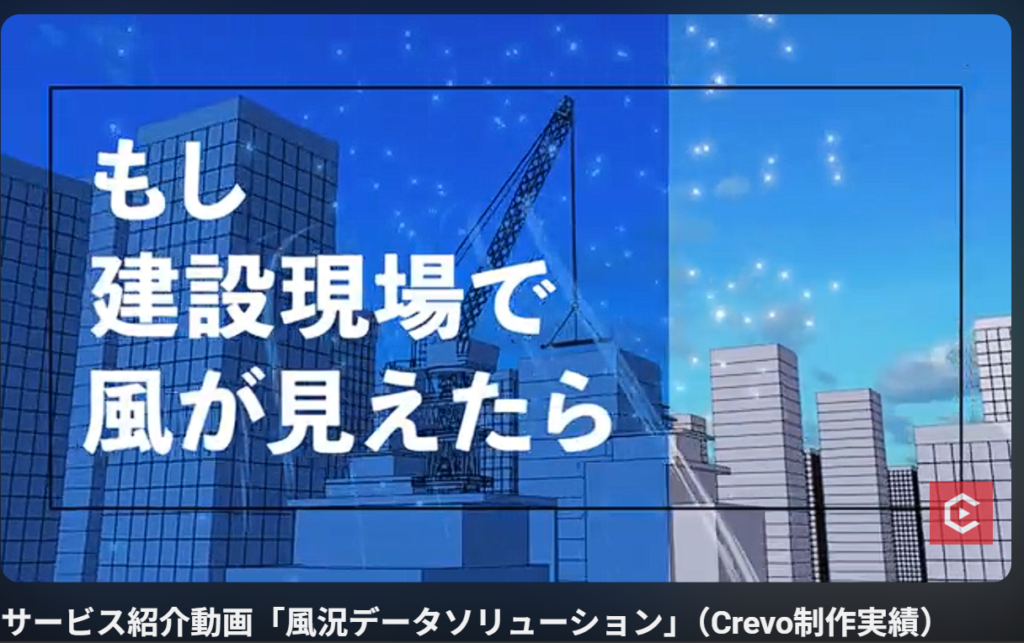 本記事では事例として、サービス紹介動画「風況データソリューション」(Crevo制作実績)をご紹介します。