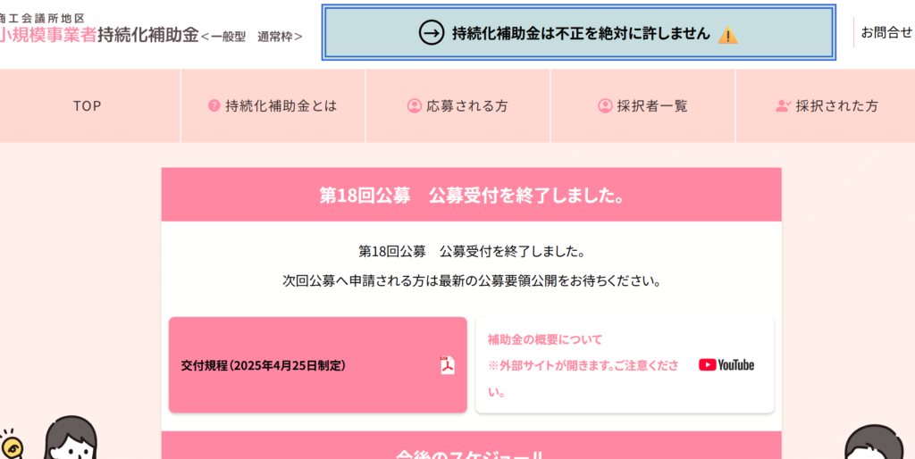 | 公式サイト | 商工会議所地区 小規模事業者持続化補助金<一般型 通常枠> |
