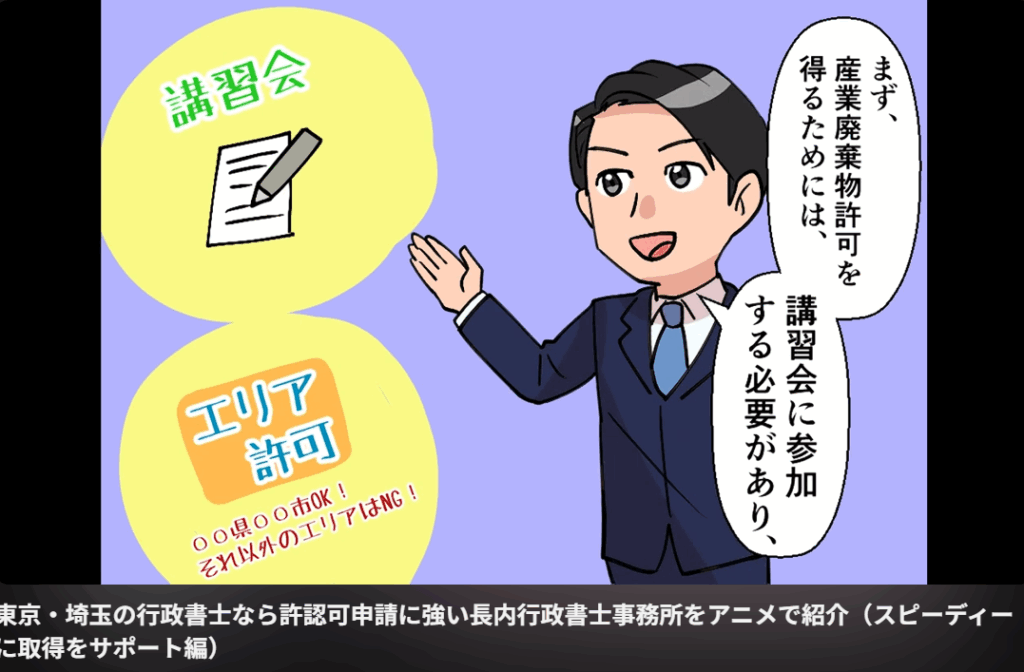 引用:東京・埼玉の行政書士なら許認可申請に強い長内行政書士事務所をアニメで紹介(スピーディーに取得をサポート編)