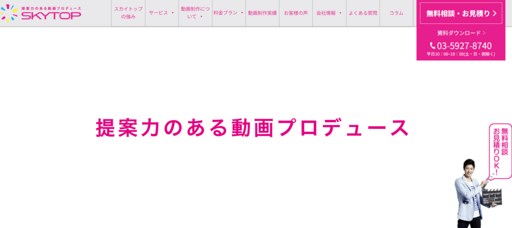 株式会社スカイトップは、「低価格×高品質」を掲げ、企業のブランディングやPR動画制作に定評がある会社です。