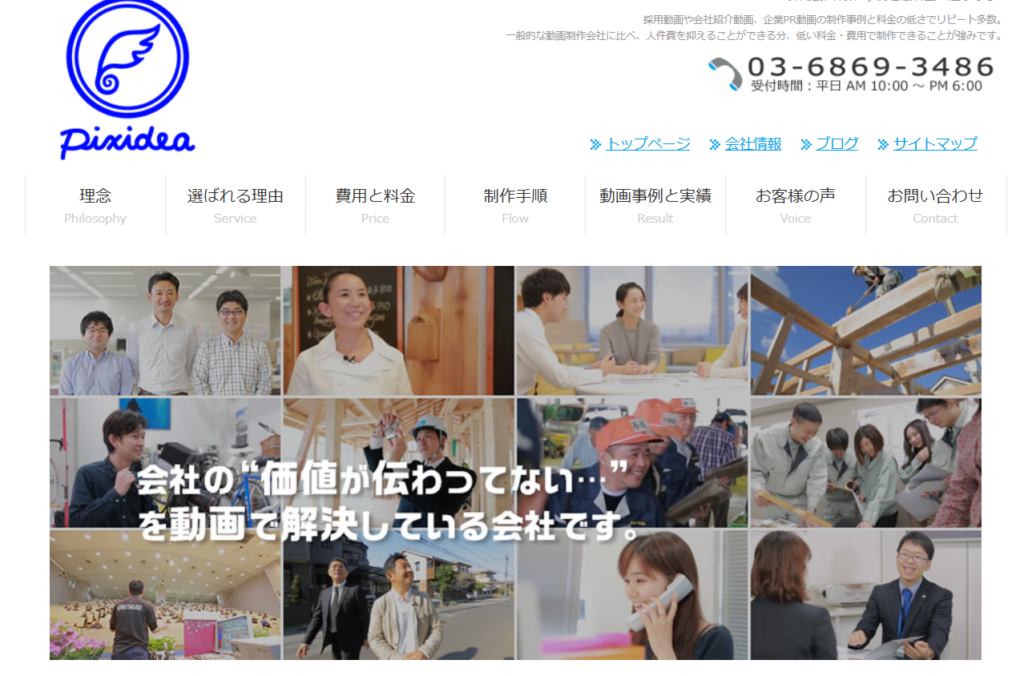 | 価格目安 | 動画制作プラン 1本10万円(税別)~ |