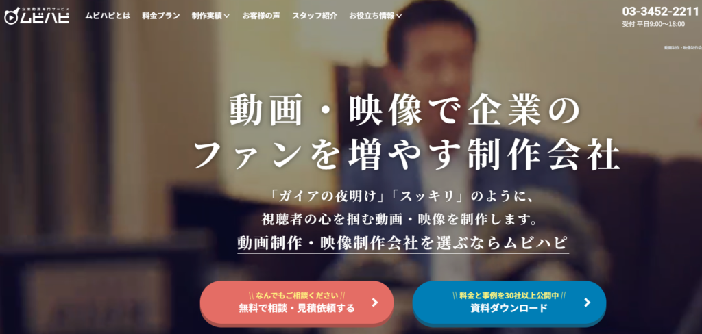 | ムビハピ | ・商品・サービスの認知度向上 ・企業紹介 | ・シンプルプラン:50万円〜80万円 ・スタンダードプラン:80万円〜150万円 ・カスタムプラン:200万円〜 ※詳細要相談 | ・元TVディレクターのノウハウがある ・記憶に残る企画と構成が得意 |